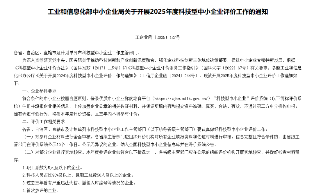 2025年科技型中小企业评价工作正式开启!作为国家推动科技创新与产业融合的重要举措,申报成功不仅能纳入全国科技型中小企业信息库,更可享受研发费用加计扣除、税收优惠、政策扶持等多重福利,是中小企业迈向"专精特新"的关键一步!