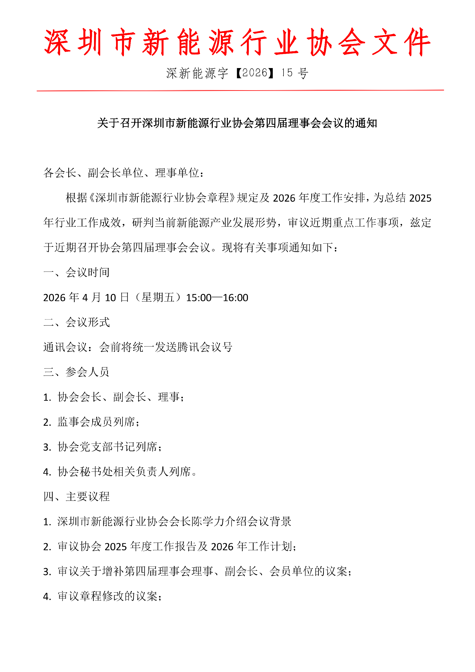 关于召开深圳市新能源行业协会第四届理事会会议的通知